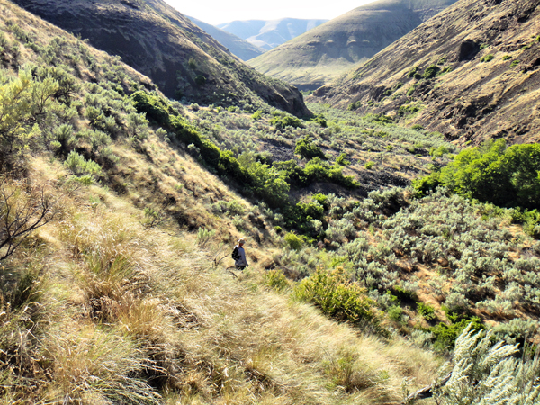 So we set out…looking for the path of least resistance…trying to skirt the jungle of stickers, nettles and jumping ticks by clinging to the sides of the canyon.