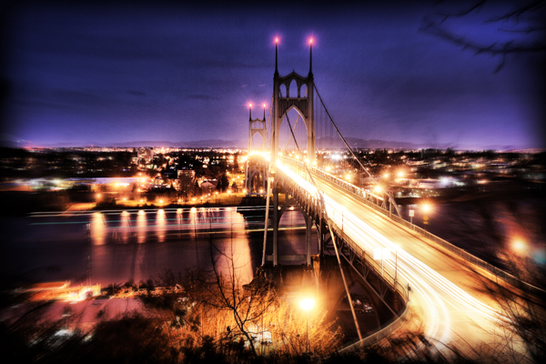 The best shots of the Last February, my corporeal friend Mr. T. accompanied me down the Willamette and I got another chance to try my hand at photographing the bridge, but ended up with yet another travelogue snapshot, “Here we gain some impression of the vast scale of the beautiful gothic towers of the St. Johns